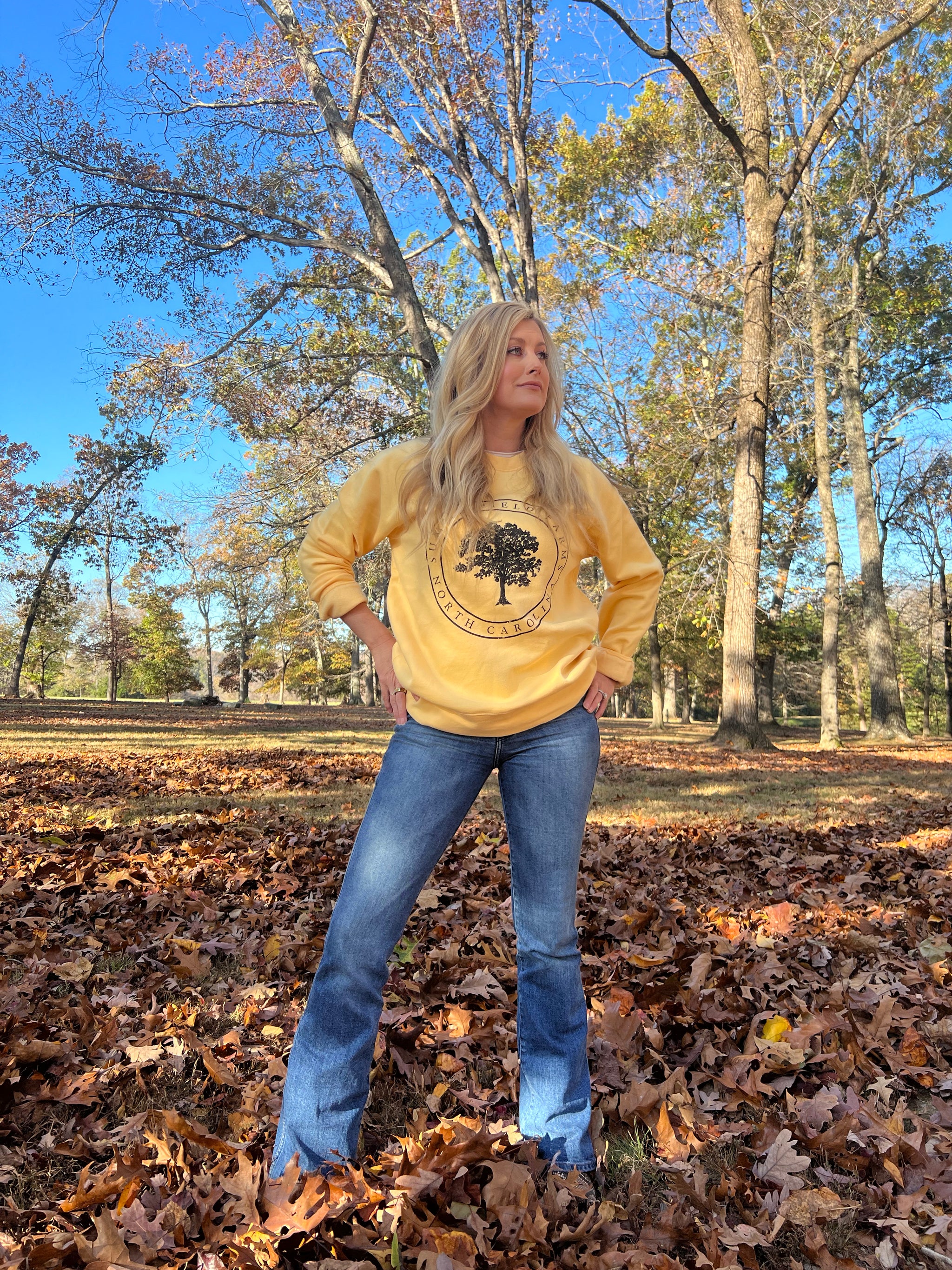 It proudly displays our iconic Little Tree encircled by our classic Summerfield Farms, North Carolina logo. To add a touch of uniqueness, we've given it a tasteful distressed look, ensuring it stands out as your new favorite sweater.